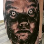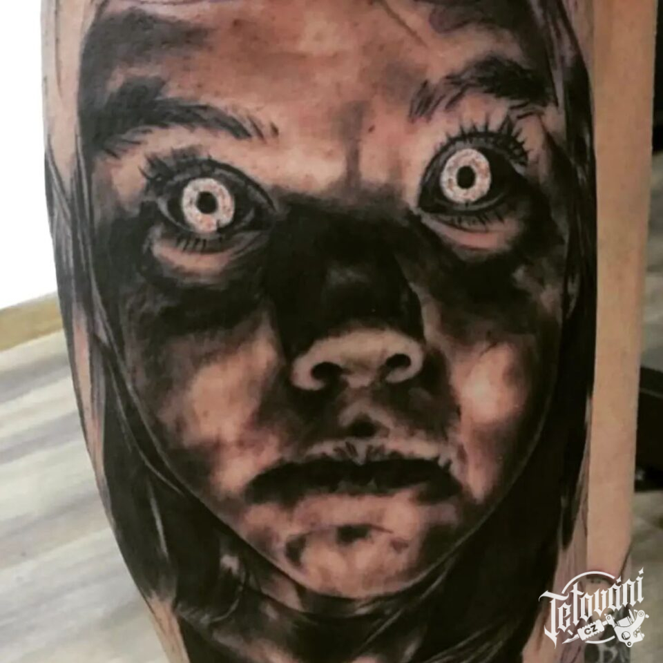 Tetování hororový portrét na stehně