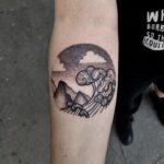 Tetování hory a moře na předloktí