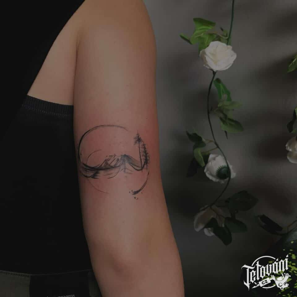 Tetování hory, příroda na paži