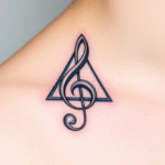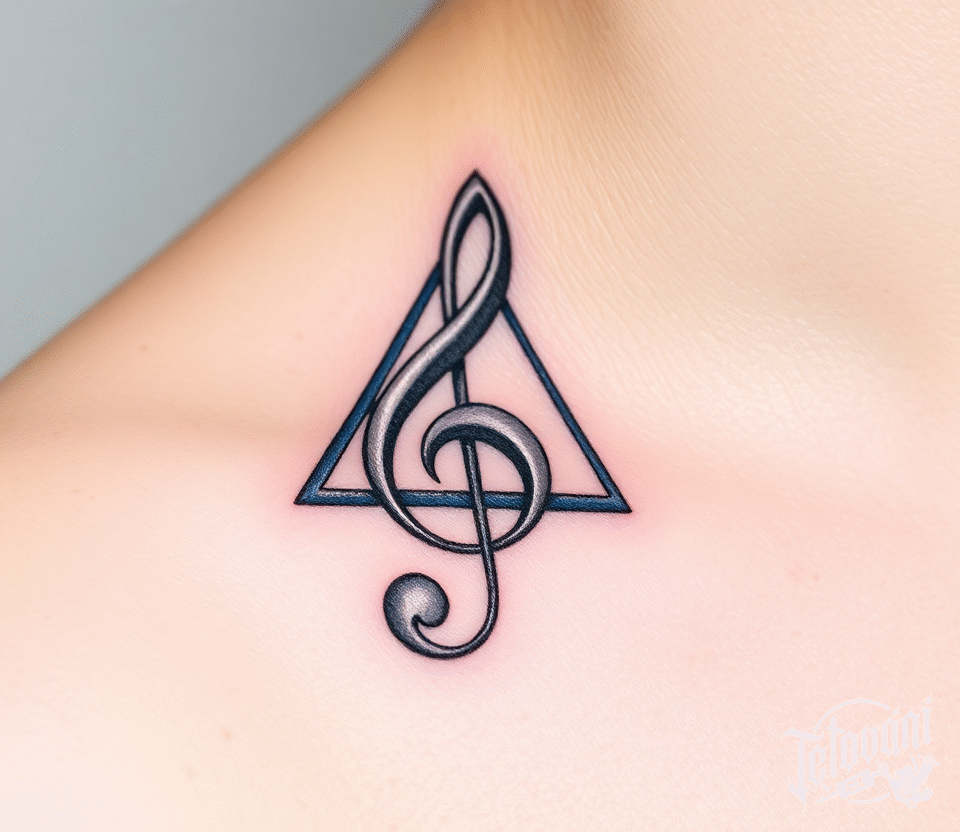 Tetování houslový klíč v trojúhelníku na klíční kosti