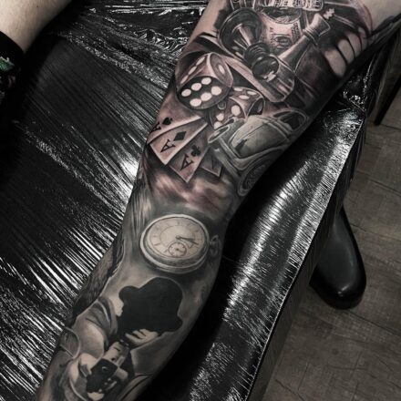 Tetování hrací karty a kostky na předloktí