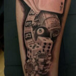 Tetování hrací kostky a karty na lýtku