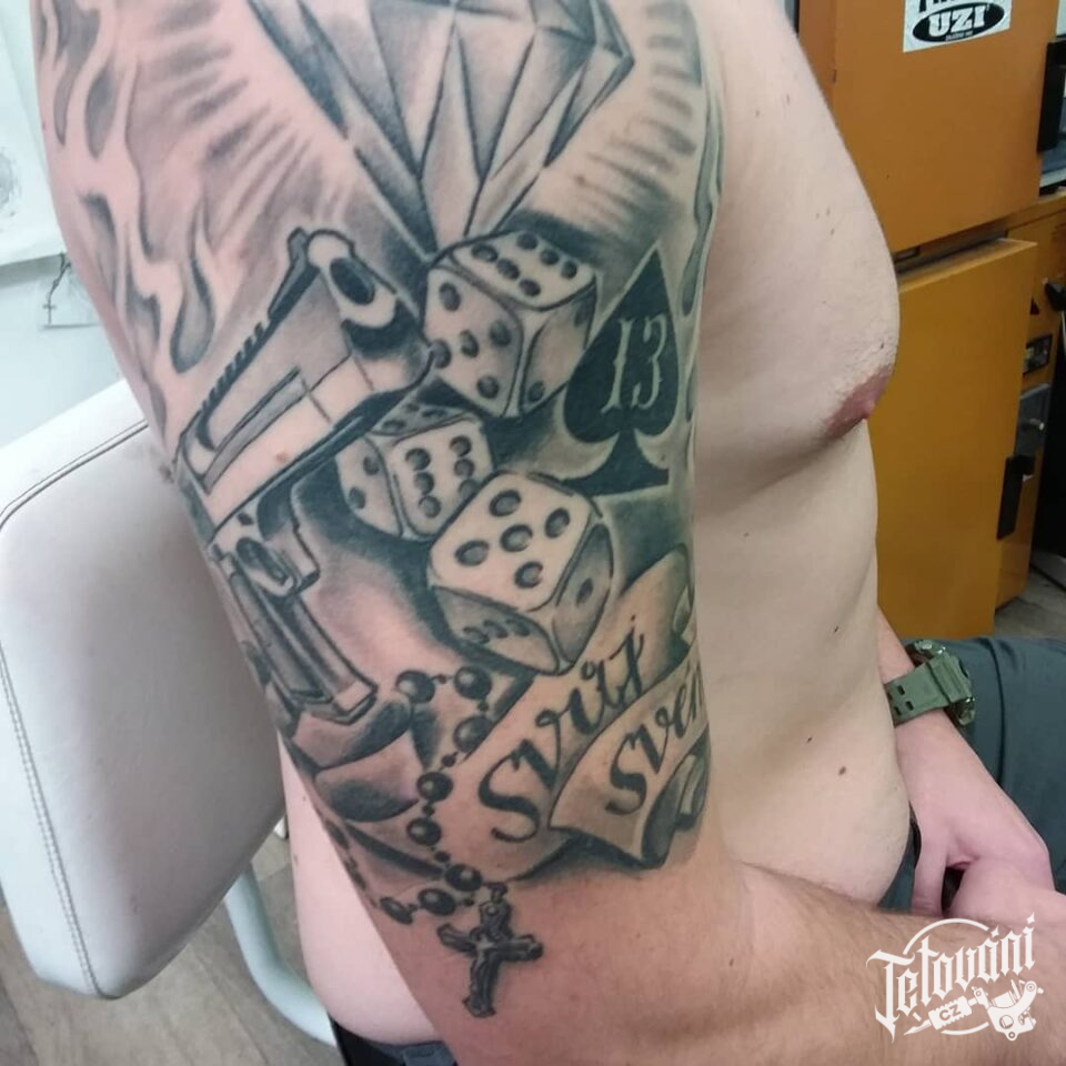Tetování hrací kostky, diamant na rameno