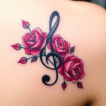 Tetování hudba, houslový klíč s růžemi na lopatce