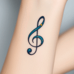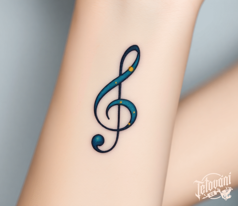 Tetování hudba, houslový klíč s tečkami na předloktí