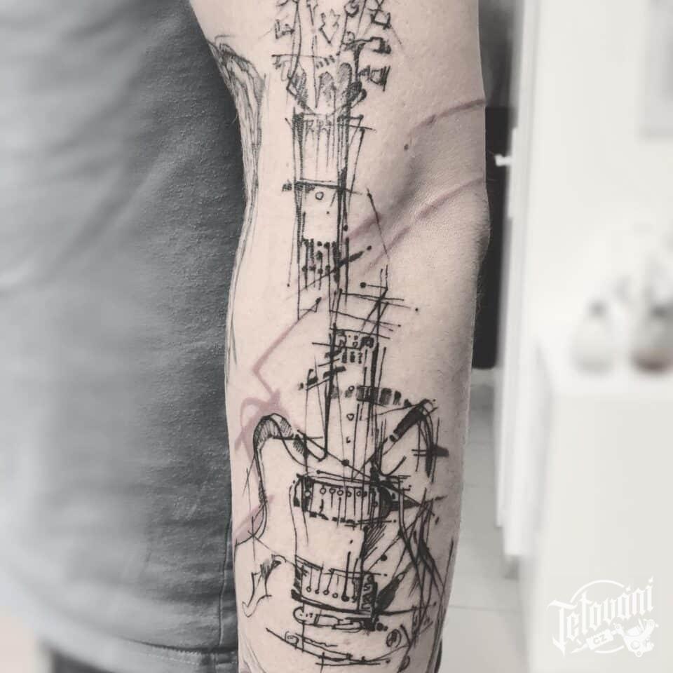 Tetování hudba, kytara na předloktí
