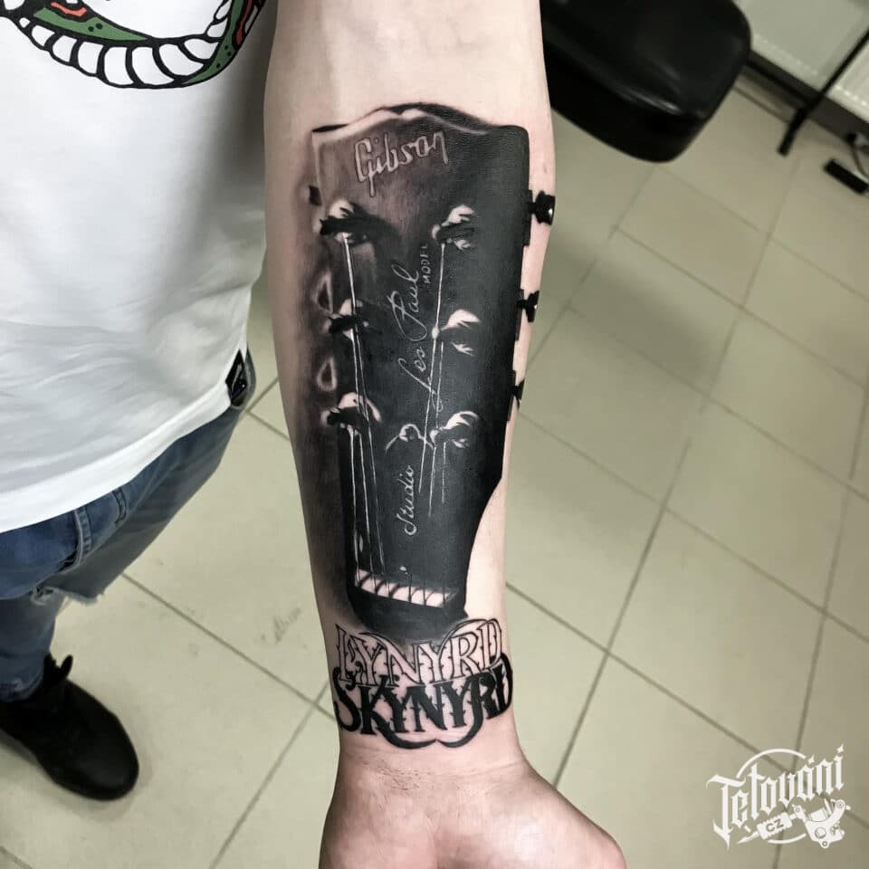 Tetování hudba, kytara na předloktí