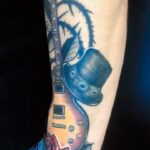 Tetování hudba, kytara, růže na předloktí