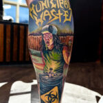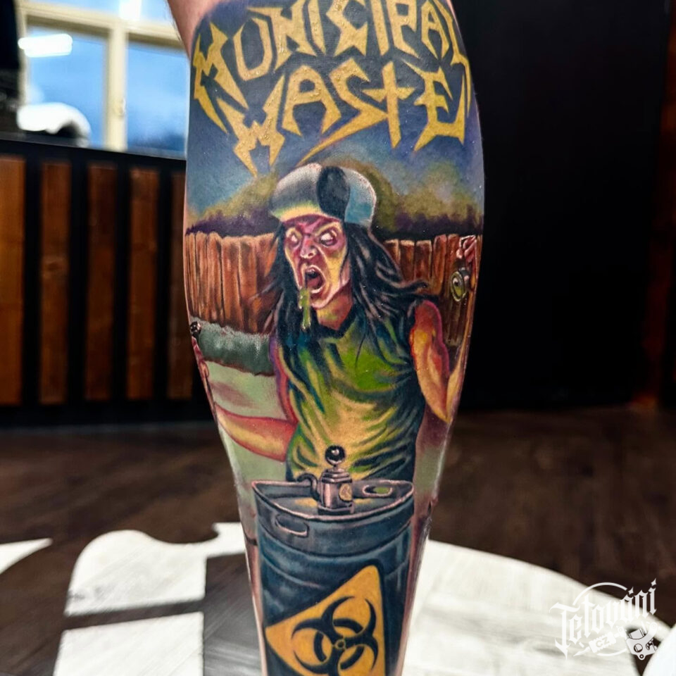 Tetování hudba, metal, nápisy na lýtku