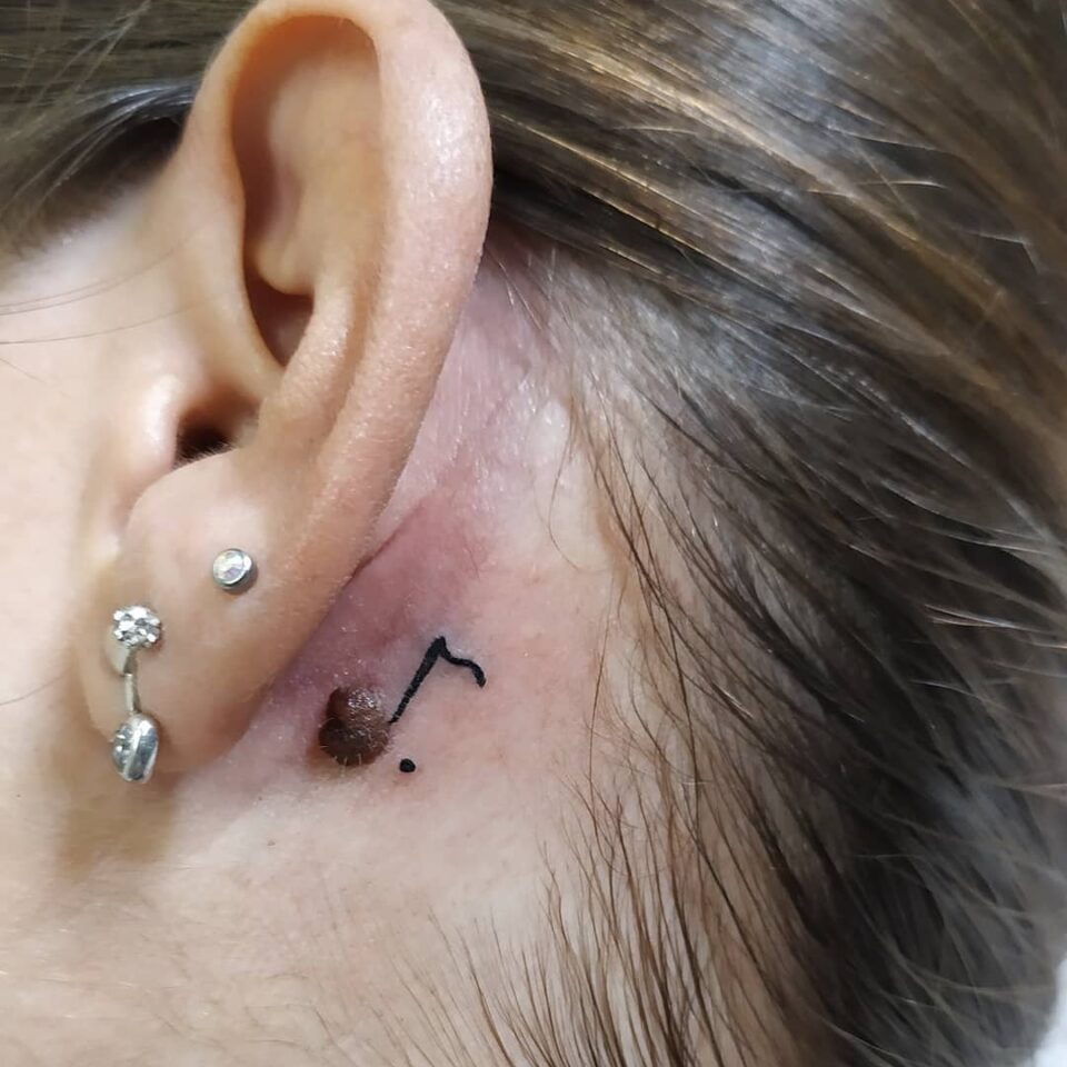 Tetování hudba, nota za uchem