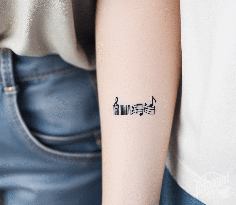 Tetování hudba, noty, čárový kód na předloktí