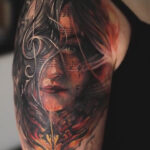 Tetování hudba, noty, portrét na rameni