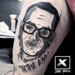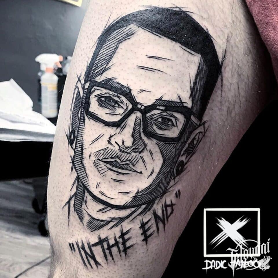 Tetování hudba, osobnosti, portrét, Chester Bennington na stehně