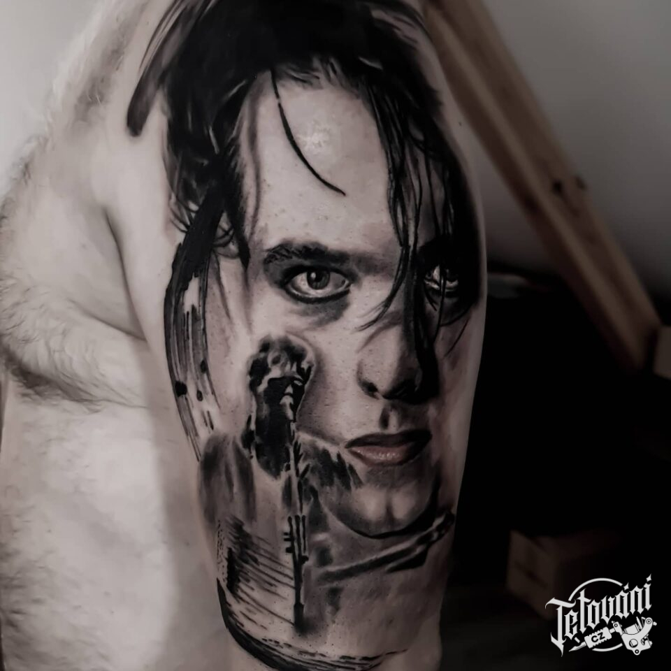 Tetování hudba, osobnosti, portrét, zpěvák z The Cure na rameni