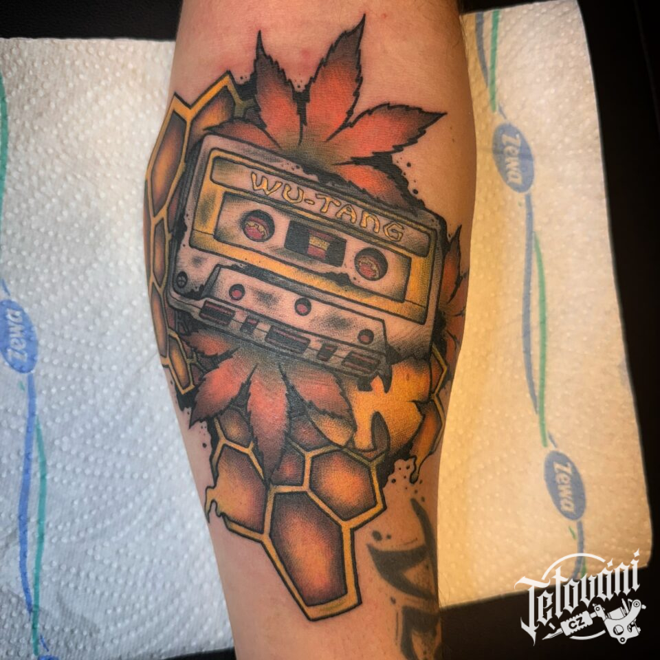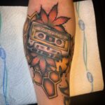 Tetování hudba, předmět, hudební kazeta na předloktí