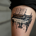 Tetování hudba, předmět z filmů a pohádek Tima Burtona na stehně