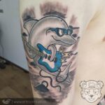 Tetování hudba, zvíře, postavička delfína s kytarou na paži