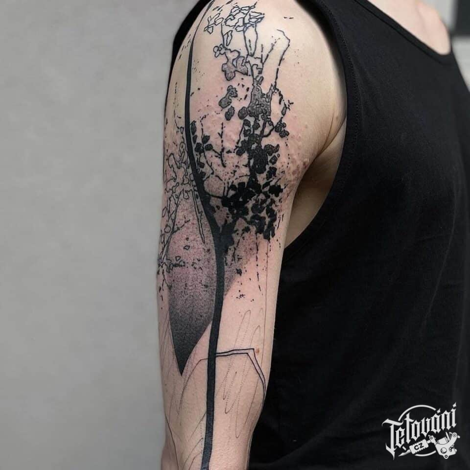 Tetování hudba, zvuky, čáry na rameni