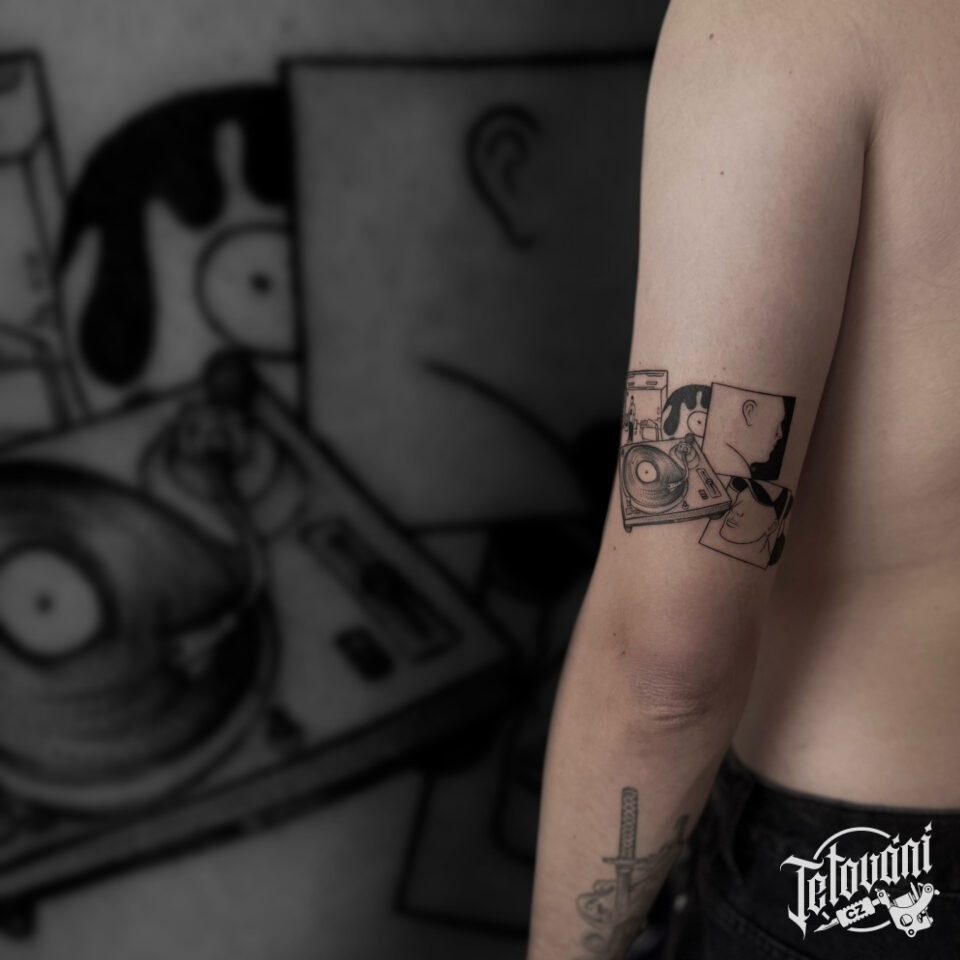 Tetování hudební předměty na ruce