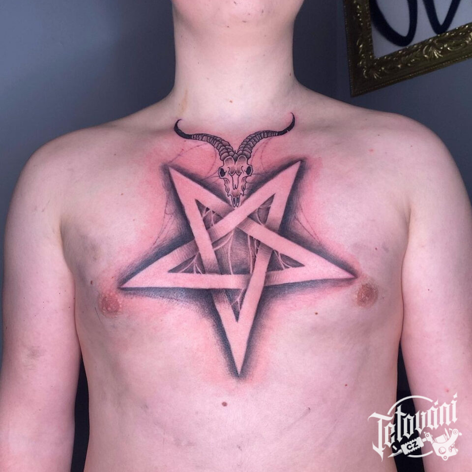 Tetování znaky a symboly, pentagram na hrudi