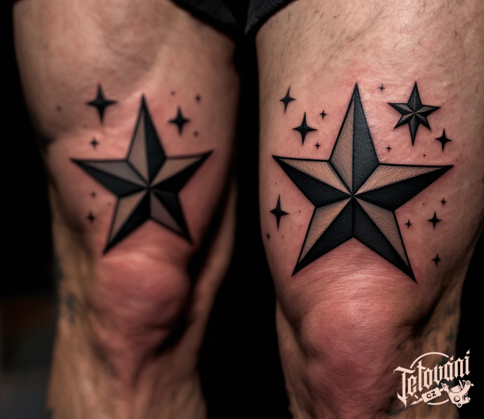 Tetování hvězdy a hvězdičky na kolenou