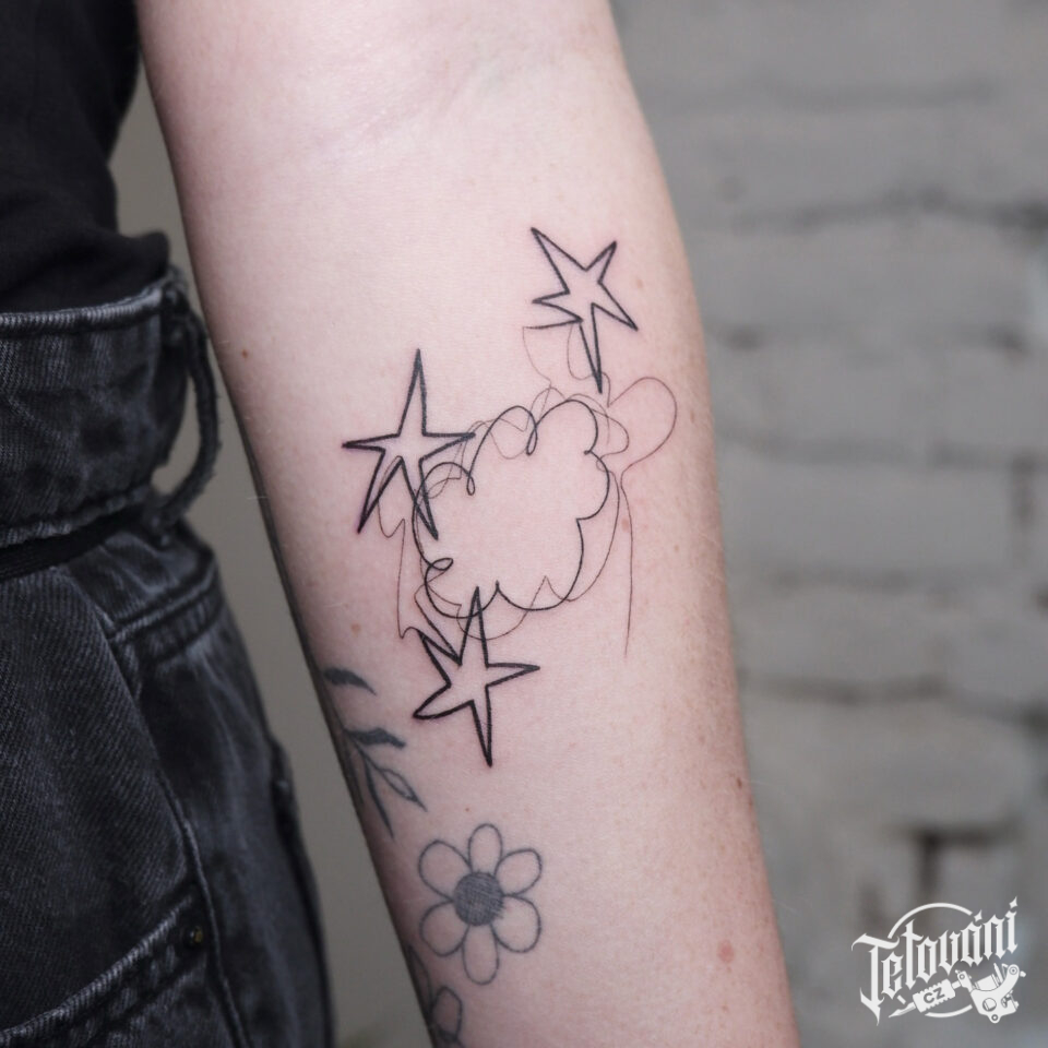 Tetování hvězdy a mrak na předloktí