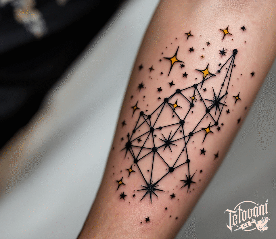 Tetování hvězdy, kozoroh znamení zvěrokruhu, souhvězdí kozoroha na předloktí