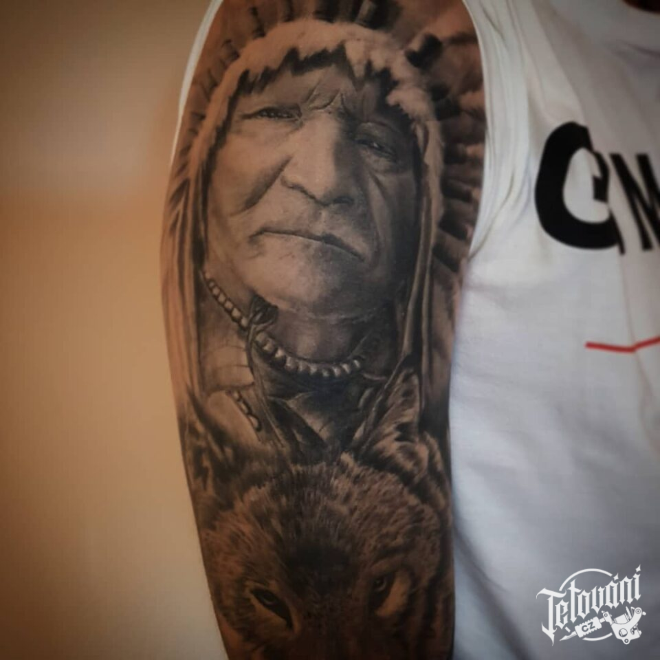 Tetování indián s vlkem ...