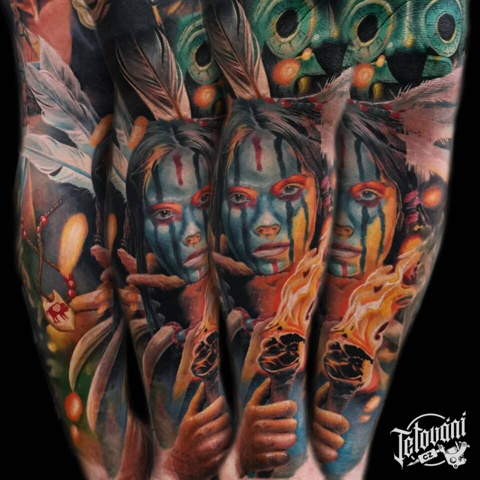 Tetování indiáni na rukávu