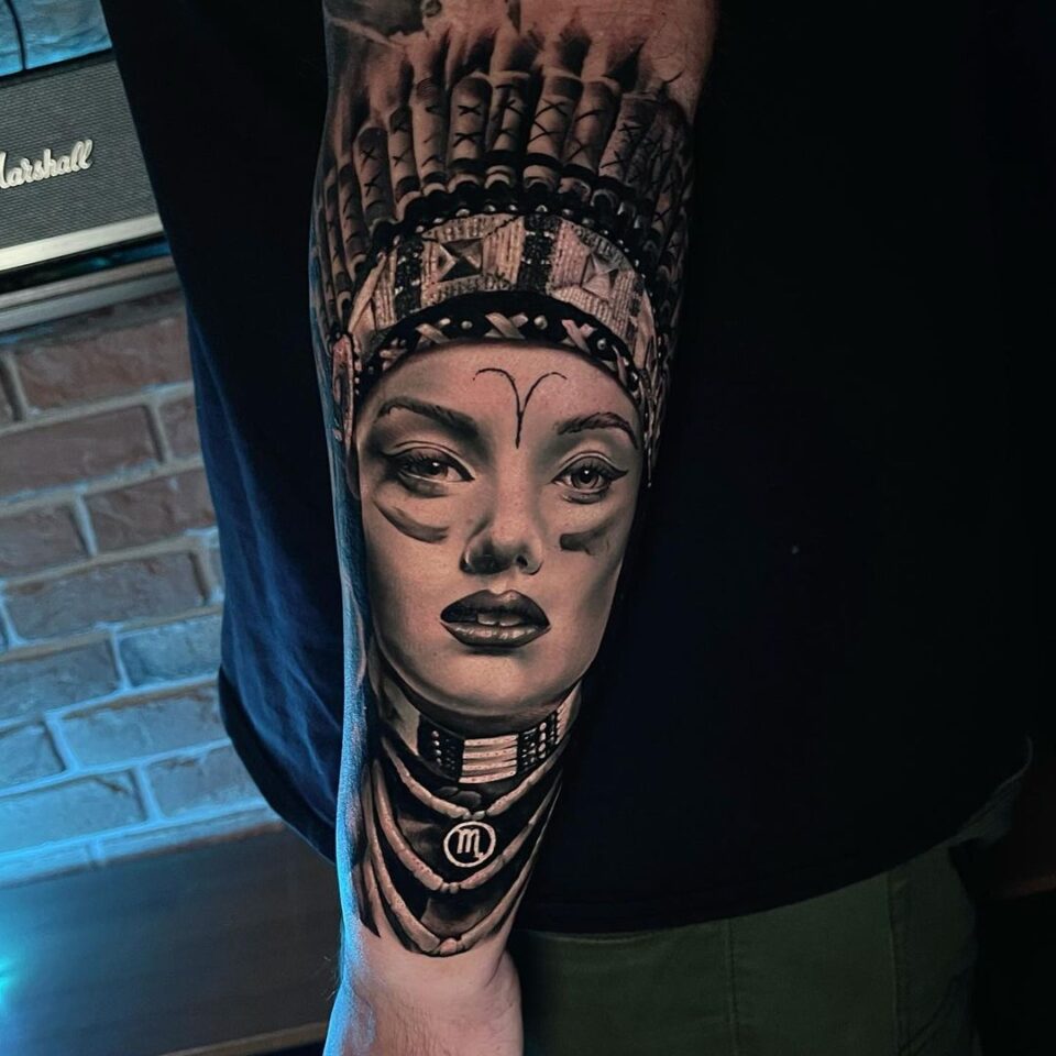 Tetování indiánka na předloktí