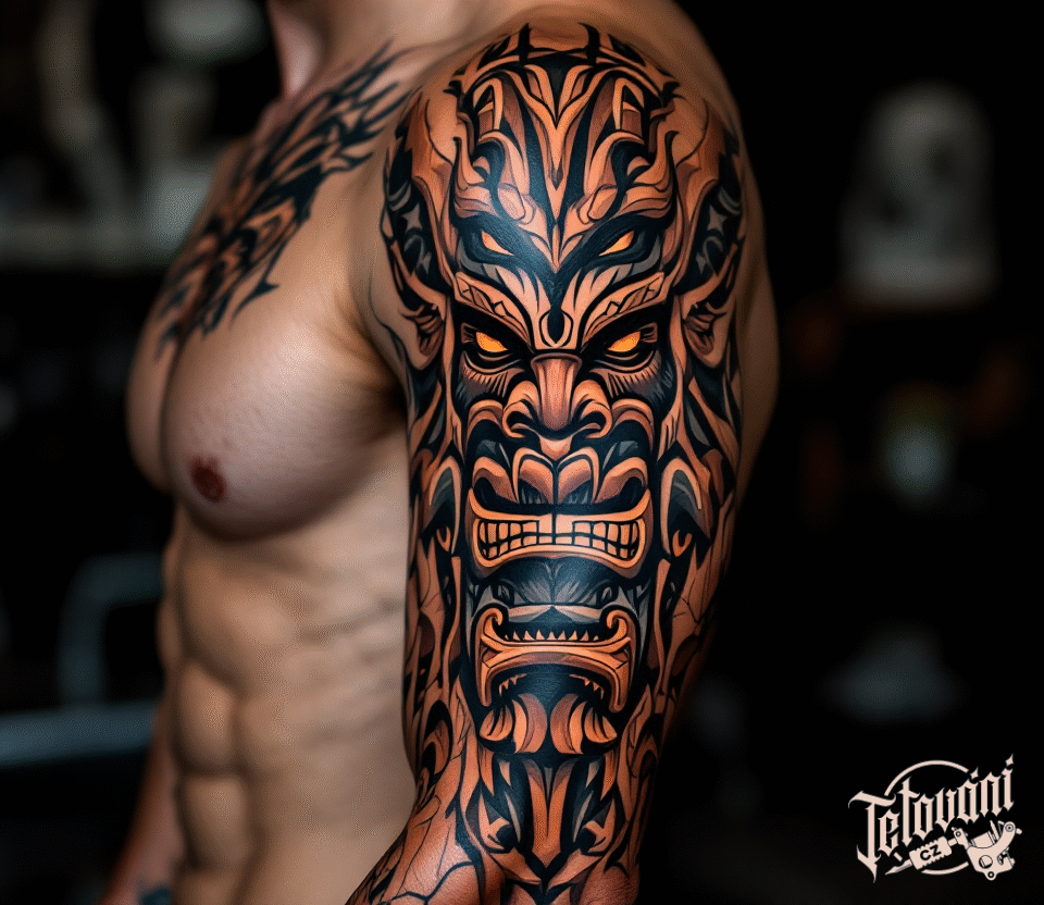 Tetování indiánské symboly na rameni
