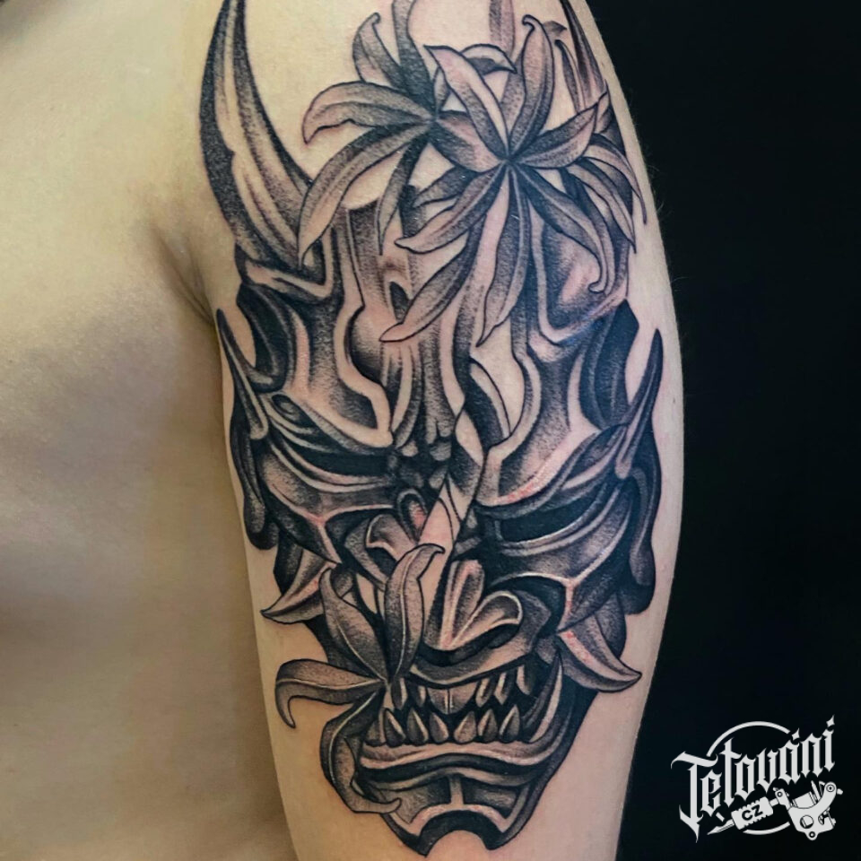 Tetování japonská mytologie, maska Hannya na rameno