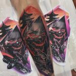 Tetování japonská mytologie, žena bojovnice s maskou a mečem na lýtko