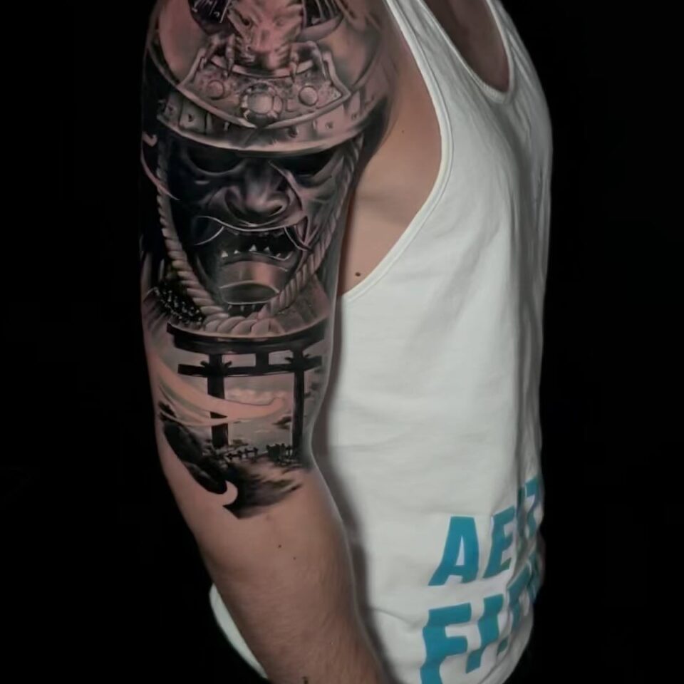 Tetování Japonské masky na rameno