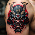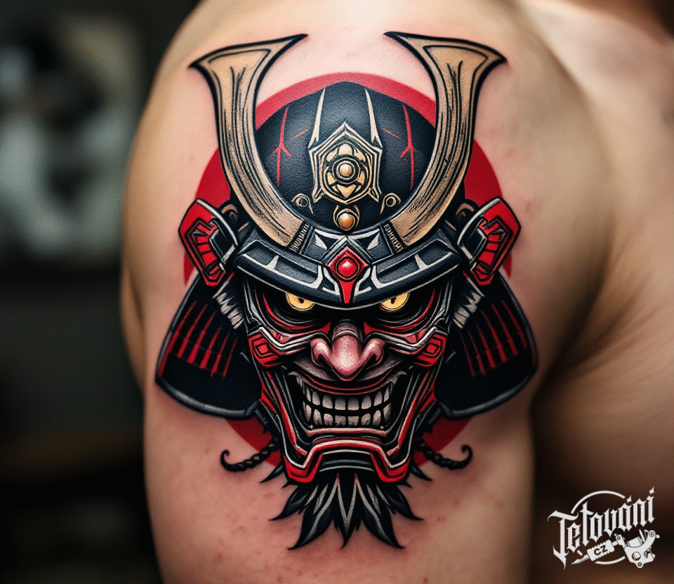 Tetování japonské symboly, samuraj na rameni