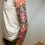 Tetování japonské znaky, lebka, meč, samuraj, rukáv