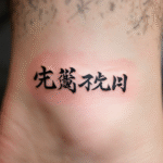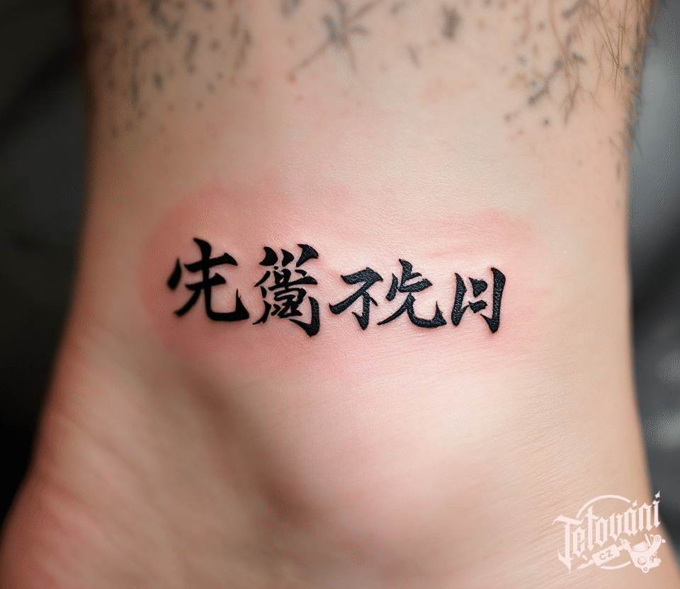 Tetování japonské znaky na kotníku