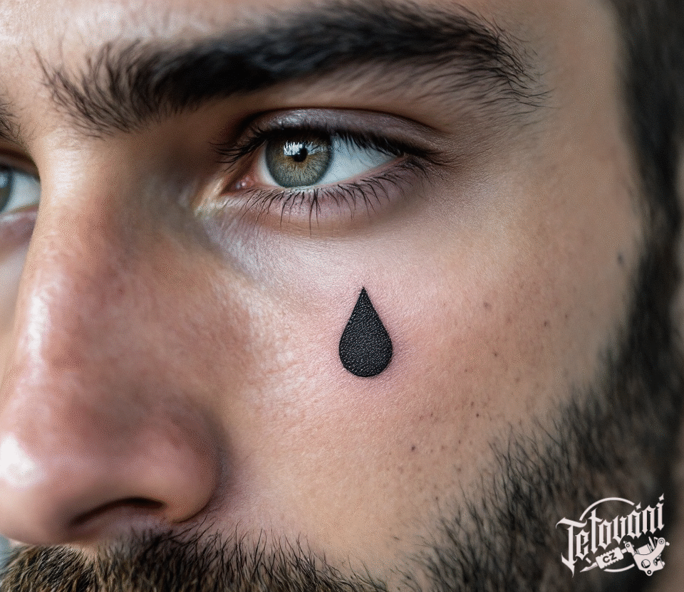 Tetování jednoduchá slza pod oko na obličeji