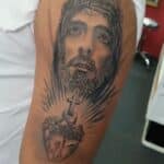 Tetování Ježíš, kříž, srdce na rameno, ruku