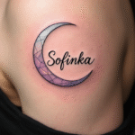 Tetování jména dětí, nápis Natálka a Měsíc na rameni