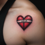 Tetování jména dětí v srdci, nápis, srdce se jménem Jakub na hrudi