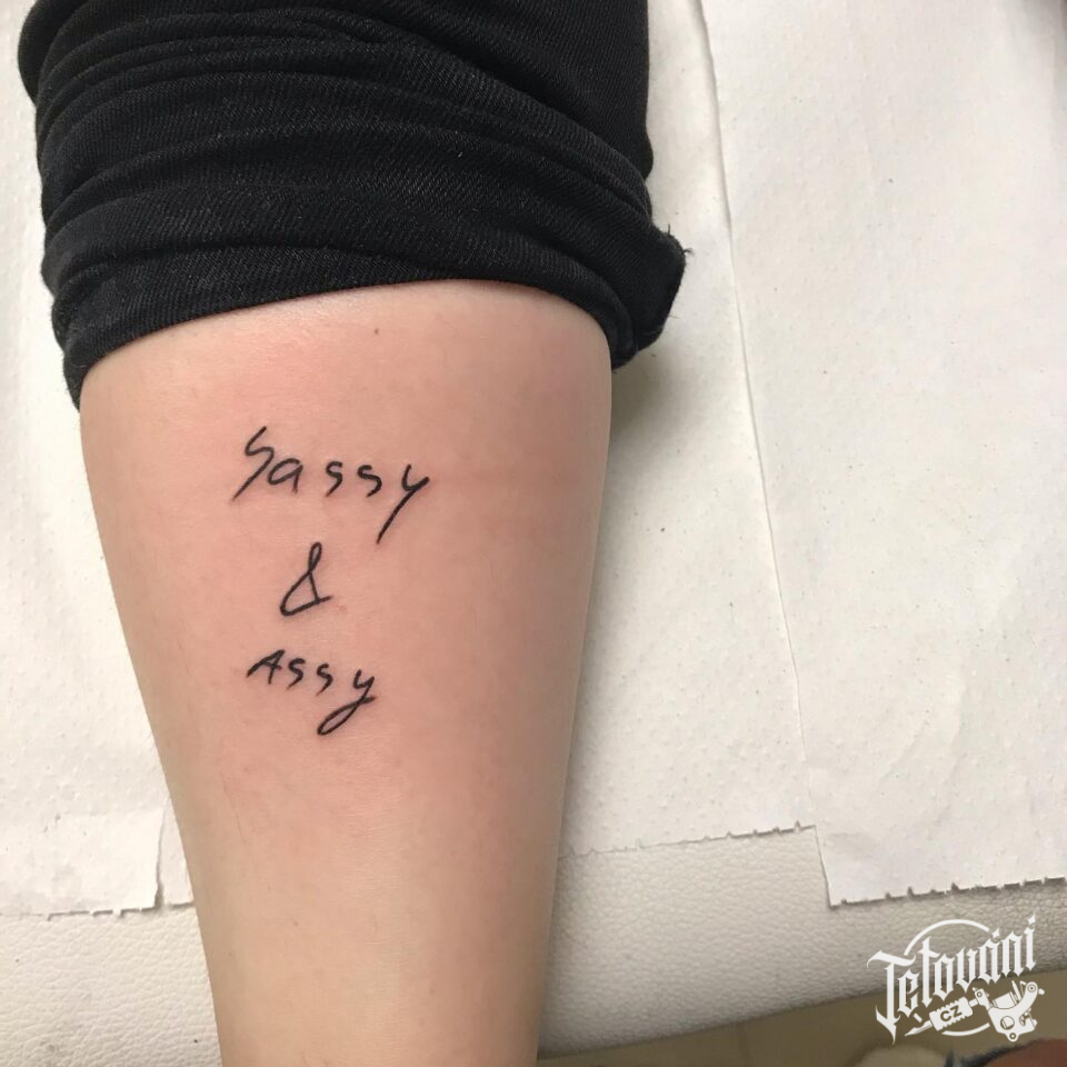 Tetování jména na lýtku