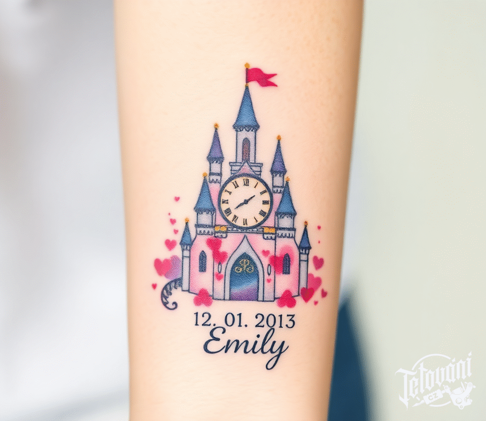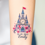 Tetování jméno a narození dítě, hodiny na předloktí