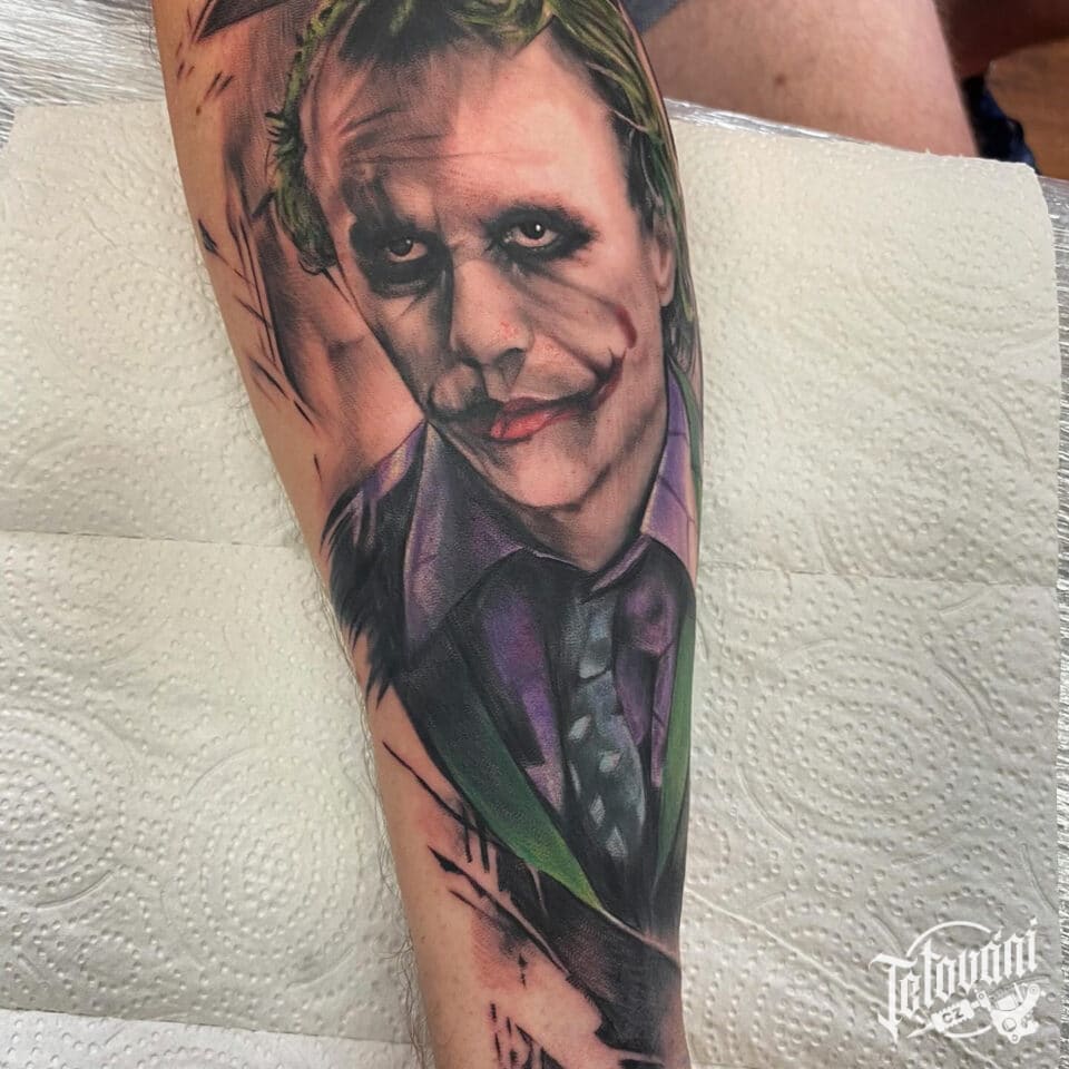Tetování Joker z filmů a pohádek na předloktí