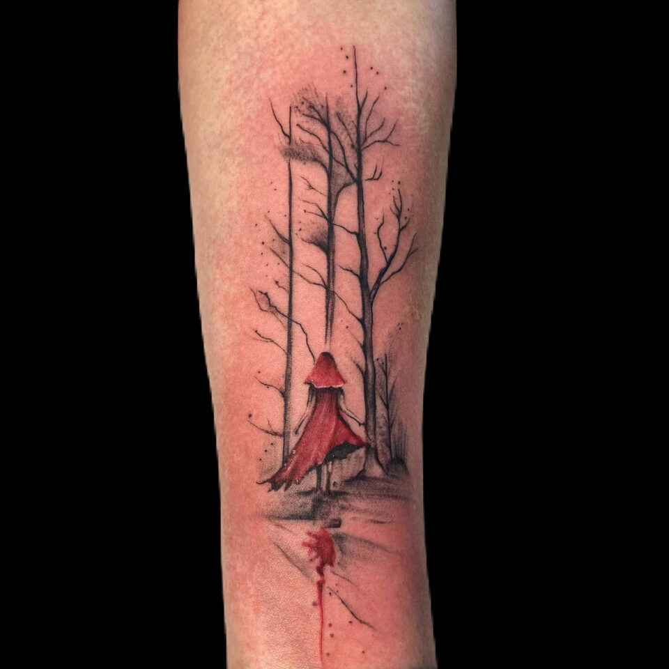 Tetování Karkulka z filmů a pohádek na předloktí