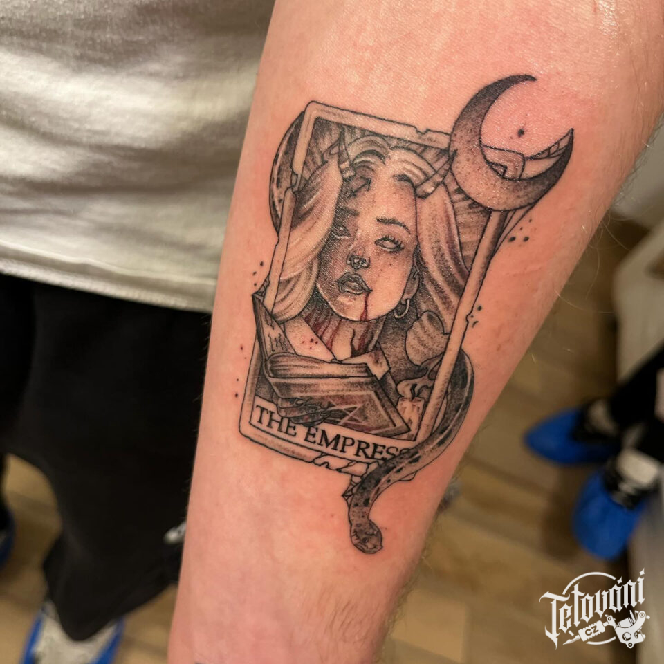 Tetování karta s ďáblem na předloktí