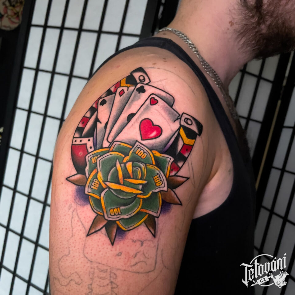 Tetování karty, květiny na rameno