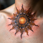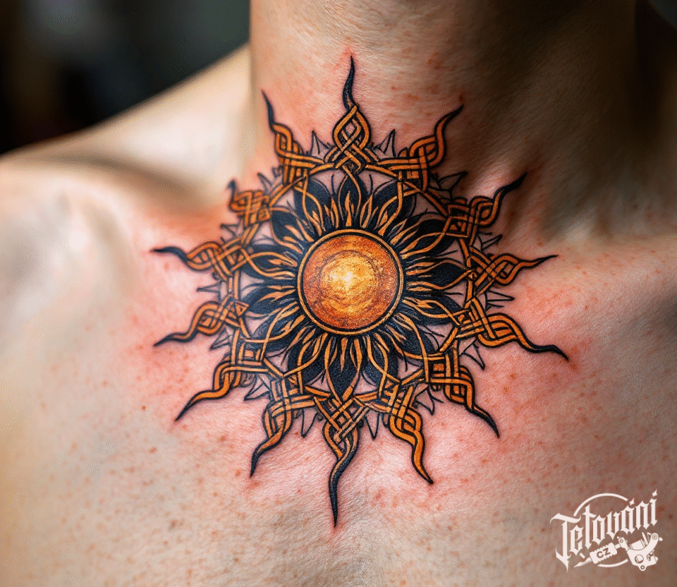 Tetování keltské slunce na klíčních kostech