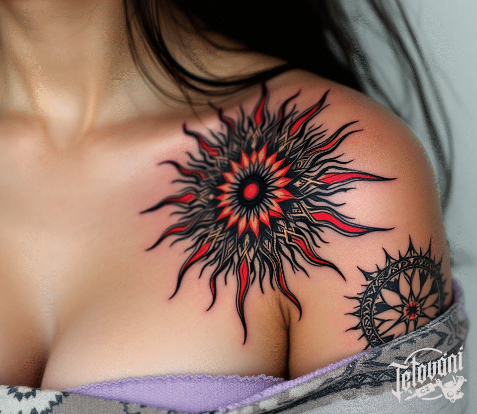 Tetování keltské slunce pod klíční kostí