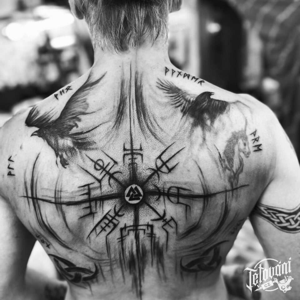 Tetování keltské znaky a symboly, runa ochranné symboly, ptáci na zádech